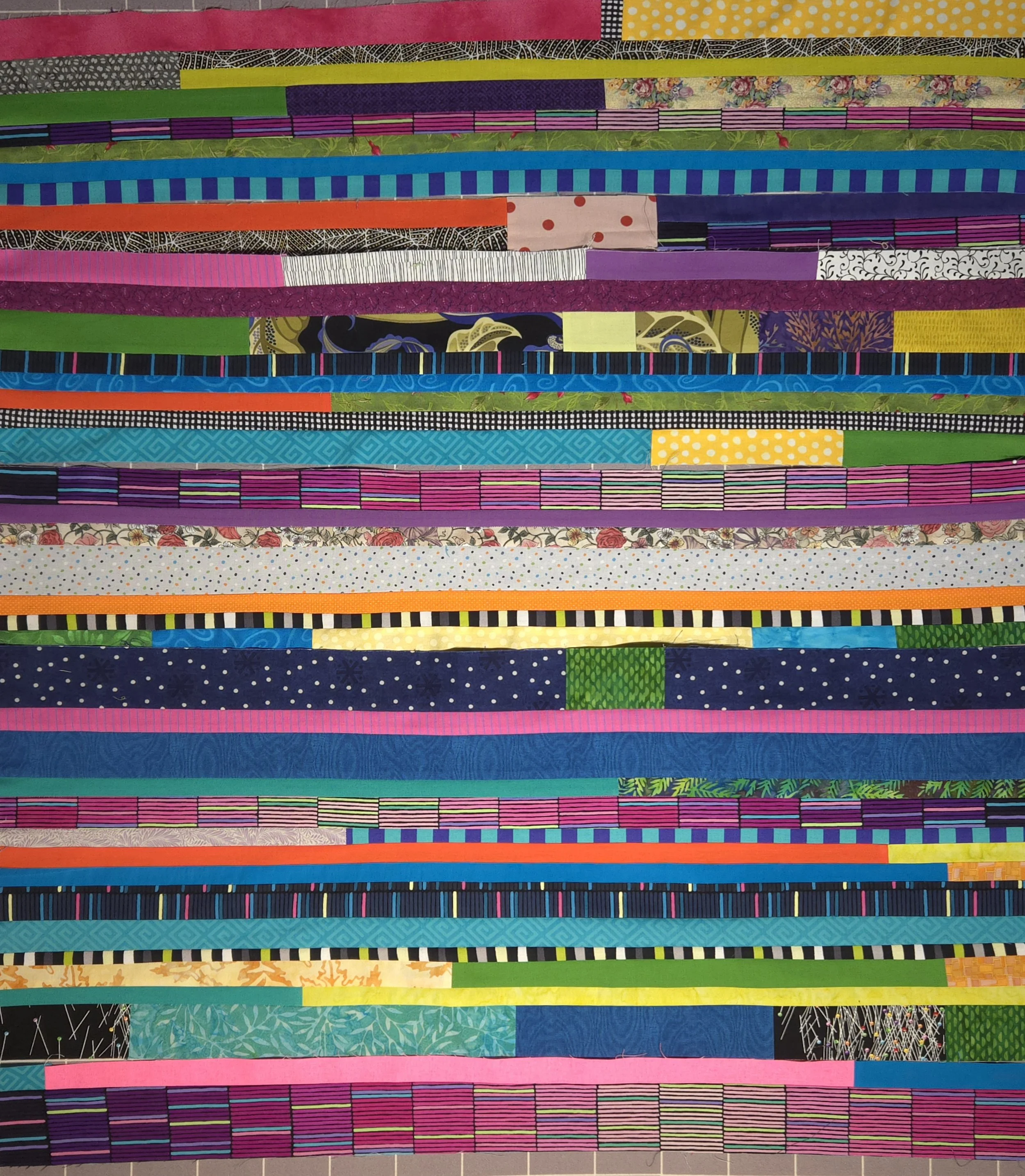 Work has begun on a new “message” quilt and as it does, I am concentrating on using brighter colors and different scale fabrics on this one. Overall, it’s much brighter than my first ‘I am listening’ work, and I am plugging along. I am wanting strips of fabric to be part of any message… fun prints, bolder colors, and different scales of pattern. Not sure yet if I’ll use the same message, or perhaps something more along the lines of encouragement.